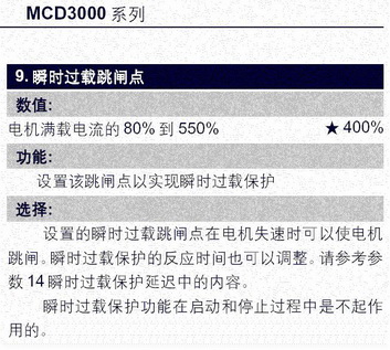 上圖是丹佛斯軟起動器瞬時過載保護的整定參數(shù)。
