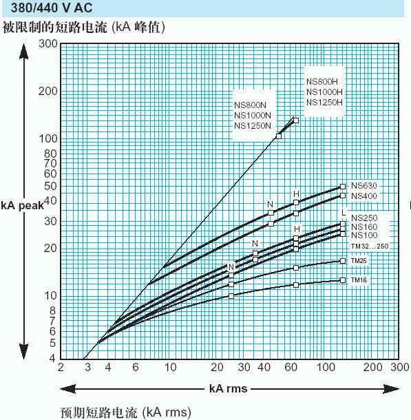 再看一下施耐德NS斷路器的高級功能 — reflex能量跳閘功能,據(jù)稱在短路故障時能產(chǎn)生一種強大氣體壓力直接作用于一個活塞機構(gòu),使斷路器快速可靠地分斷。由于動作非常迅速,<10ms,所以如同快速熔斷器一樣,具有自然抑制短路電流的功能。其限流特性曲線如下圖:
