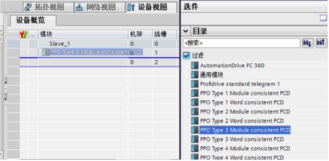 選擇合適的 PPO 模塊,將其拖動(dòng)到插槽一的位置。例如下圖選擇 PPO Type3 Module consistent PCD,左鍵選擇拖動(dòng)到插槽一位置釋放。