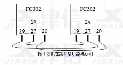 2、若1#機故障停機,端子27無高電平輸出,2#機則激活預置參考值0,以100%速度運行;