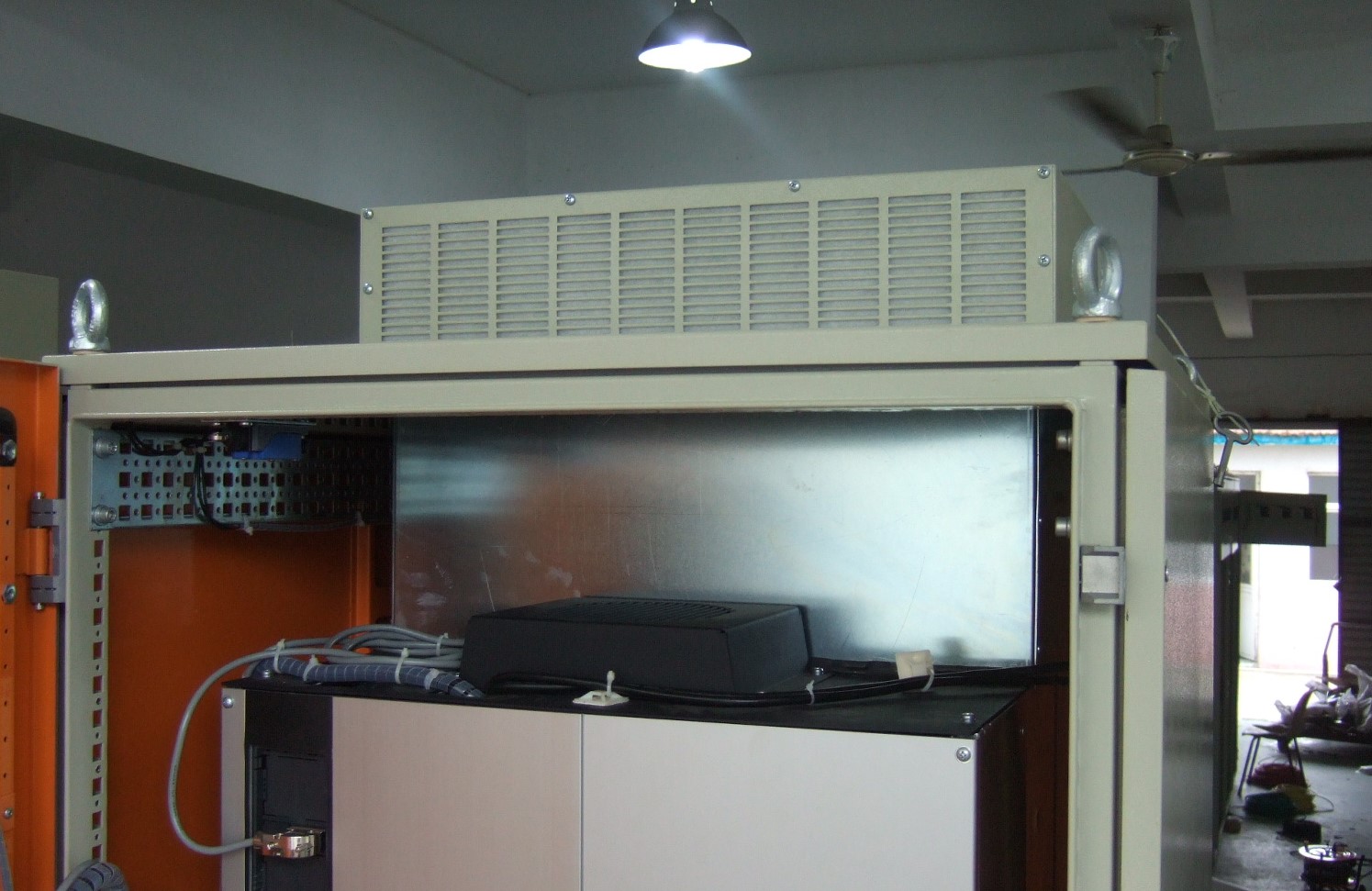 6、如果不用獨(dú)立風(fēng)道,請(qǐng)按照公式Q(m³/h)=3.1*P(w)/K(℃)計(jì)算,其中Q 是所需要的散熱風(fēng)量、P 是柜內(nèi)總發(fā)熱量、K 是溫升(取值為45℃-最高環(huán)境溫度),計(jì)算出Q 后,建議按照兩倍的經(jīng)驗(yàn)值來(lái)選擇,因?yàn)楣駜?nèi)散熱不是百分百的有效散熱,特別是風(fēng)扇有濾網(wǎng)時(shí)更要再放大。