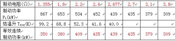 2.如果TRISE ≤ TRISE-MAX ,說(shuō)明此阻值下的制動(dòng)功率PR能夠滿足100%制動(dòng)率的要求;