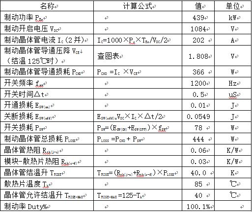 1.首先選取一電阻值,比如3Ω,然后根據(jù)此制動(dòng)電阻值可以知道制動(dòng)電流和制動(dòng)功率,利用表二可以算出連續(xù)制動(dòng)時(shí)制動(dòng)晶體管的結(jié)溫升TRISE。