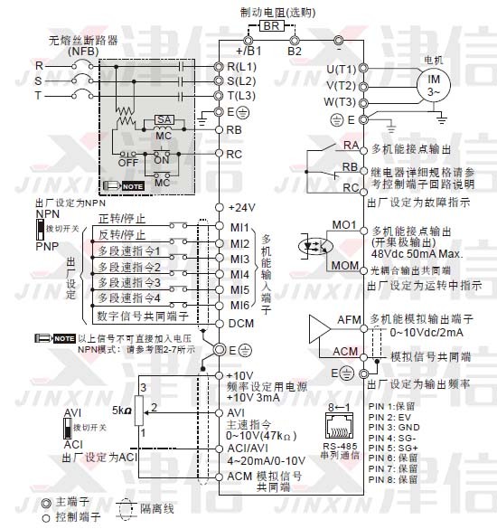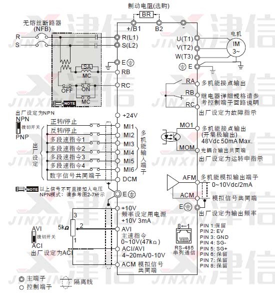 l 接地端子E 以第三種接地方式接地,460V 機(jī)種以特種接地方式接地。