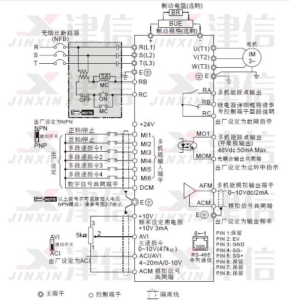 l 控制配線請(qǐng)盡量使用隔離線,端子前的隔離網(wǎng)剝除段請(qǐng)勿露出。
