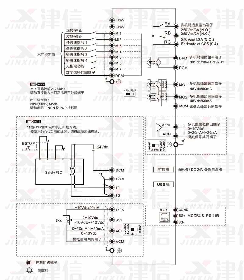 成放電需要一定時間。為避免危險,客戶可使用直流電壓表作測試。確認(rèn) 電壓值小于 25 Vdc 安全電壓值后,才能開始進(jìn)行配線。若使用者未讓變頻 器充分時間放電,內(nèi)部會有殘留電壓,此時進(jìn)行配線會造成電路短路并發(fā) 生火花現(xiàn)象,所以請用戶最好在無電壓條件下進(jìn)行作業(yè)以確保自身安全。