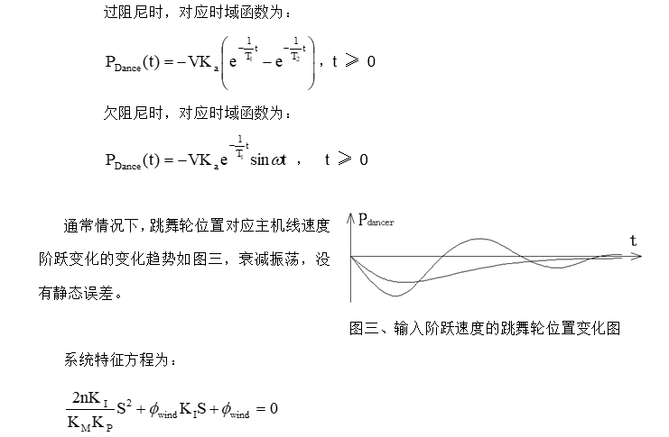 上面的方程表明跳舞輪位置反饋控制等效于以鋼簾線的線速度為輸入變量的二階控制系統(tǒng)。下面就主機工作于勻速和勻加速(減速)兩種不同的工況分別分析跳舞輪位置控制的控制特性。