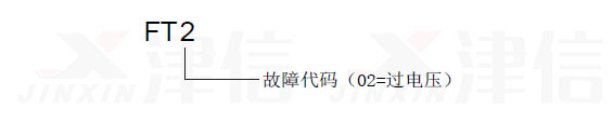 當(dāng)偉肯變頻器出現(xiàn)故障時,偉肯變頻器會停止運(yùn)轉(zhuǎn),并且在顯示器上以如下的格式閃爍顯示符號FT 和故障代碼。例如: