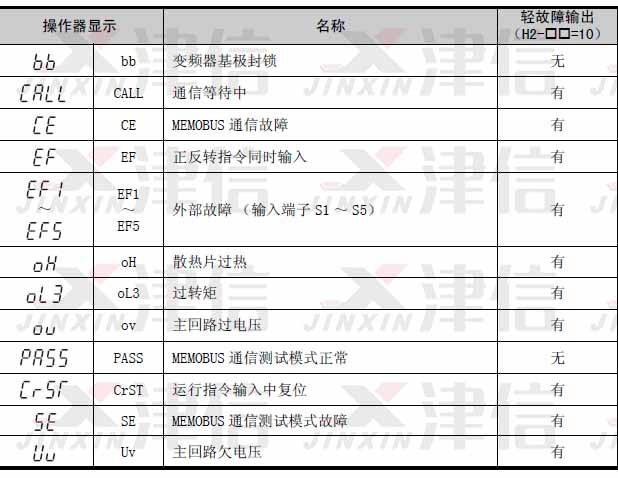 l 輕故障時(shí)∶進(jìn)行多功能接點(diǎn)輸出H2-01=10 (輕故障)的設(shè)定時(shí),信號(hào)關(guān)閉。