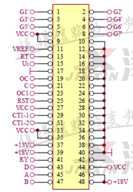 給變頻器送電后,變頻器面板顯示ERR37,根據(jù)故障解釋說明,檢查CPU小板反饋至控制卡的信號波形異常,有帶毛刺的尖雜波。測量點(diǎn)為下圖45,47號。