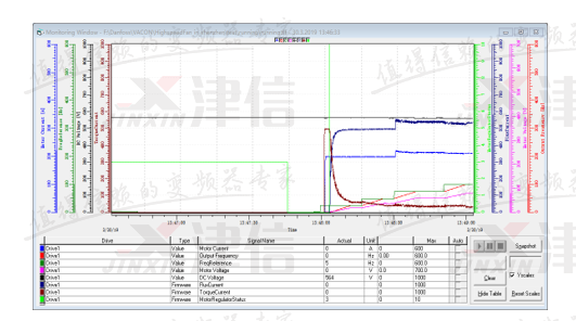 可以看出在高速狀態(tài)下,VaconNXP變頻器在高速應(yīng)用的對(duì)電機(jī)震動(dòng)影響不大,而其他品牌變頻器在高速應(yīng)用時(shí),會(huì)增加電機(jī)震動(dòng)。高速應(yīng)用在Vacon變頻器有完整的解決方案,NXP系列變頻器完全可以穩(wěn)定應(yīng)用在高速應(yīng)用的場(chǎng)合,同時(shí)有良好的應(yīng)用效果。