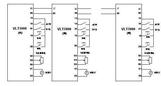 在工業(yè)輸送設備中,需要按照一定的速比實現(xiàn)多臺電機聯(lián)動。以往要實現(xiàn)此功能大都是通過機械裝置來完成,電氣方面的解決方案往往依靠大量的PLC模擬量模塊來實現(xiàn),使得系統(tǒng)存在靈活性低、維護工作量大、工藝復雜、成本較高、安裝困難等缺點。通過采用丹佛斯VLT5000系列變頻器,我們有了新的解決方案。