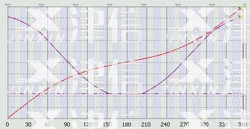 圖2凸輪曲線——紫色線為速度,紅色線為位置